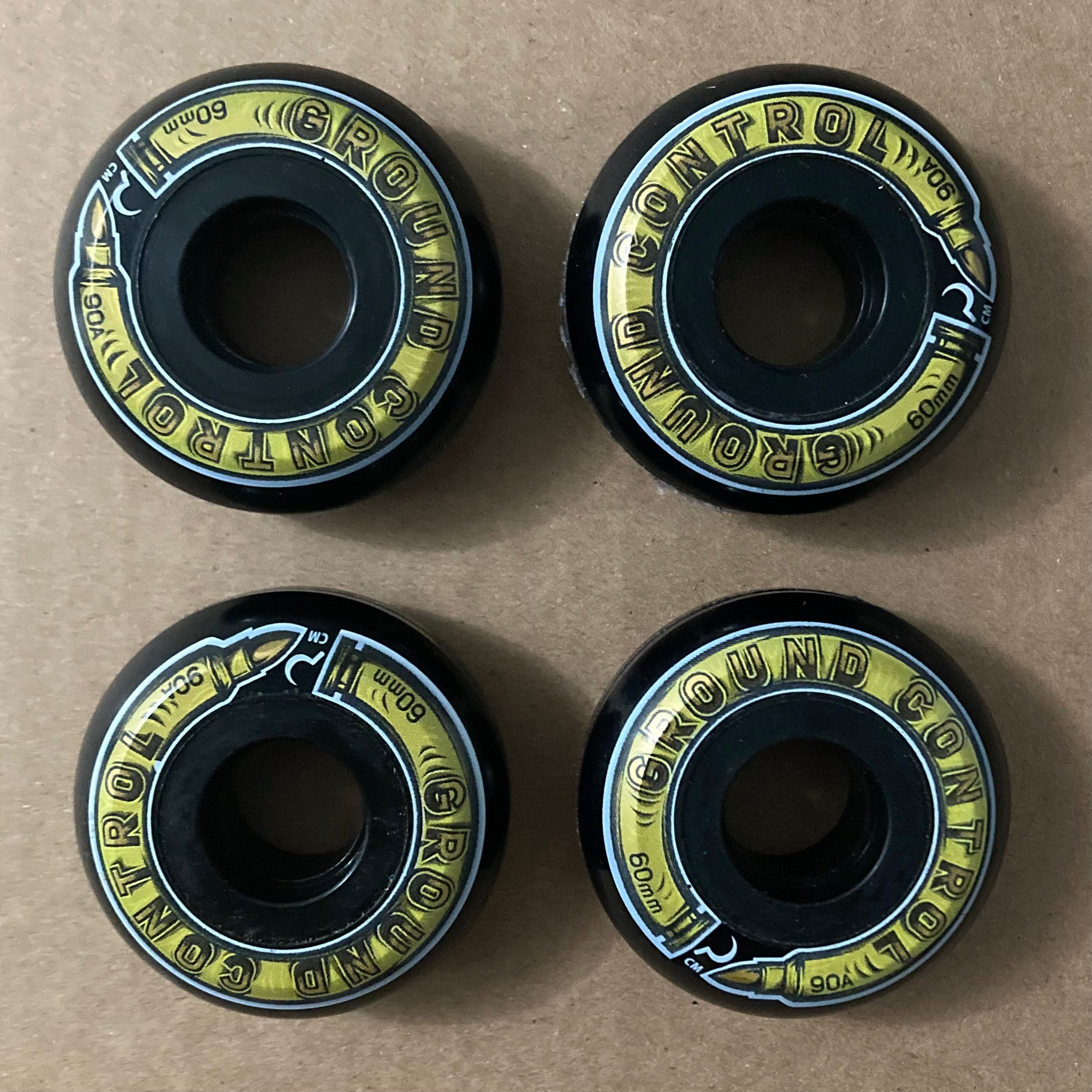 The Ground Control 60mm/90a Bullet inline skate wheels. Black urethane, bullet profile. Sold in 4 Packs. Don't forget to add in Sonic Bearing Spacers!