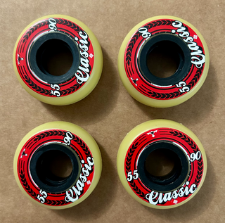 One set left! The USD 55mm/90a inline skate wheels. Natural urethane, black core, sold in 4 Packs. Don't forget to add on Sonic Bearing Spacers!